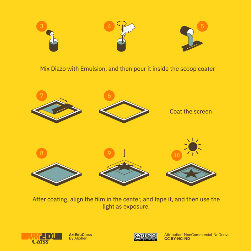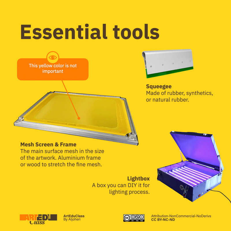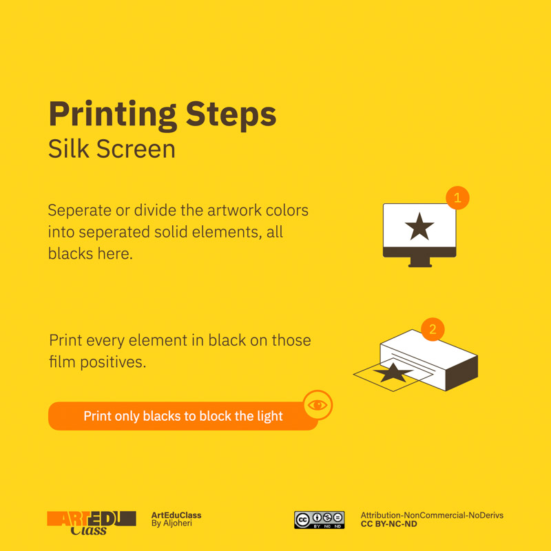 A printmaking technique using mesh, pouring it with an insulating material that freezes with light, and we block the light from the drawn places, so the material freezes with light and remains blocked, and then washes the cloth to remove the wet part of the material, and then we pour the color onto the cloth so that the colors permeate through the spaces on the desired surface. It is widely used on clothing due to its high-quality print.